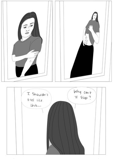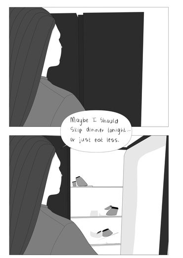 It tells a story about the struggles of body dysmorphia and how it effects the way we think about food and ourselves.