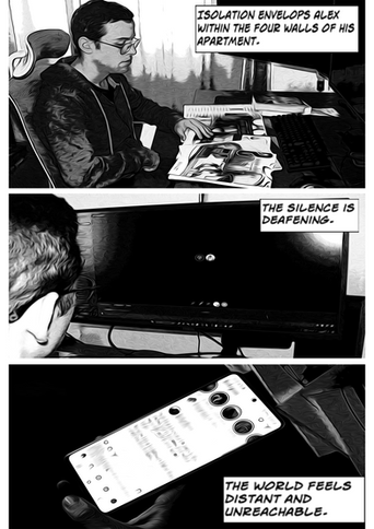 Mirrors Within is a digital graphic novel that explores my personal experience of body dysmorphia. Through visual storytelling, the work traces the internal struggle and gradual path toward healing as I confront my reflection in the mirror. The narrative reveals the tension between perception and reality, using the mirror as a recurring symbol of self-examination, fragmentation, and self-acceptance.